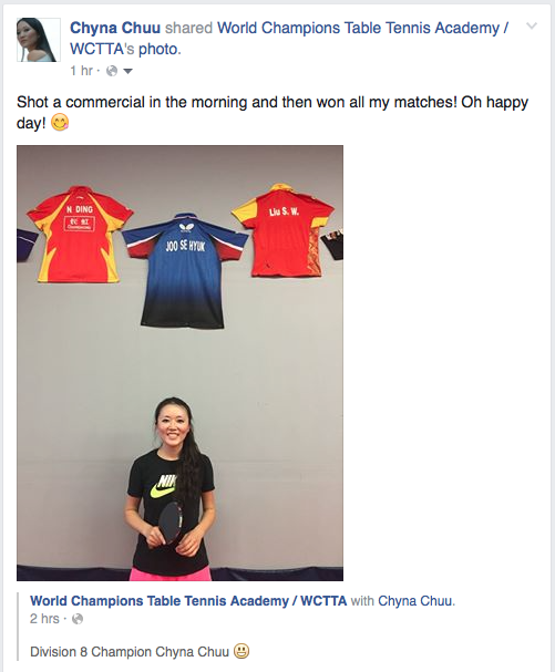 ![]() ![]() 7.28.16 Whee I made my first time-lapse live drawing video and it was so fun! Watch it with the sound on! I'm also in the National Collegiate Table Tennis Association (NCTTA) promo video (they also interview the two current Olympians!). I'm at 08:39: 7.8.16 My project "Ecocity VR San Francisco" has been released online! ![]() I am the MC for 3 segments - go to http://ecocityvr.org, click on the play button, and then the camera icons under Socio Cultural, Eco-Literary, and Inclusive Design. The project was sponsored by the non-profit Ecocity Builders, who are trying to reshape cities for the long-term health of human and natural systems! ![]() 5.25.16 My VISA print ad is online! ![]() I went to IMDB to forward a friend the Numb3rs episode where I was a co-star - and found out they are using my picture in the IMDB thumbnail! ![]() ![]() Another TT League win! Yay! ![]() Sketch inspired by a Chinese proverb: “The best time to plant a tree was 20 years ago. The second best time is now.” ![]() 3.7.16 I got cast in a Bay Area movie! I play the Guide for the film The Valley! I recently started competing in league tournaments for table tennis and I've been the Division 7 Champion for three weeks! Yay! ![]() 1.18.16 A second spot for Presence Security! I'm at 1:07: 1.14.16 Yay, I got upgraded to principal! They're playing it on TV and radio (I'm at 0:17):10.29.15 My print ad for Golden Gate University is being shown! I saw at least five of the banners in a 2x2 block around Mission and 1st St. in San Francisco. So fun! ![]() 9.23.15 Yay, I shot another commercial! This time for a new water-saving device. I'll update when it gets released! 6.29.15 Wow, my second print ad in two weeks! This time for Siemens. Feeling so blessed! 6.25.15 I've added some new sketches to my gallery!