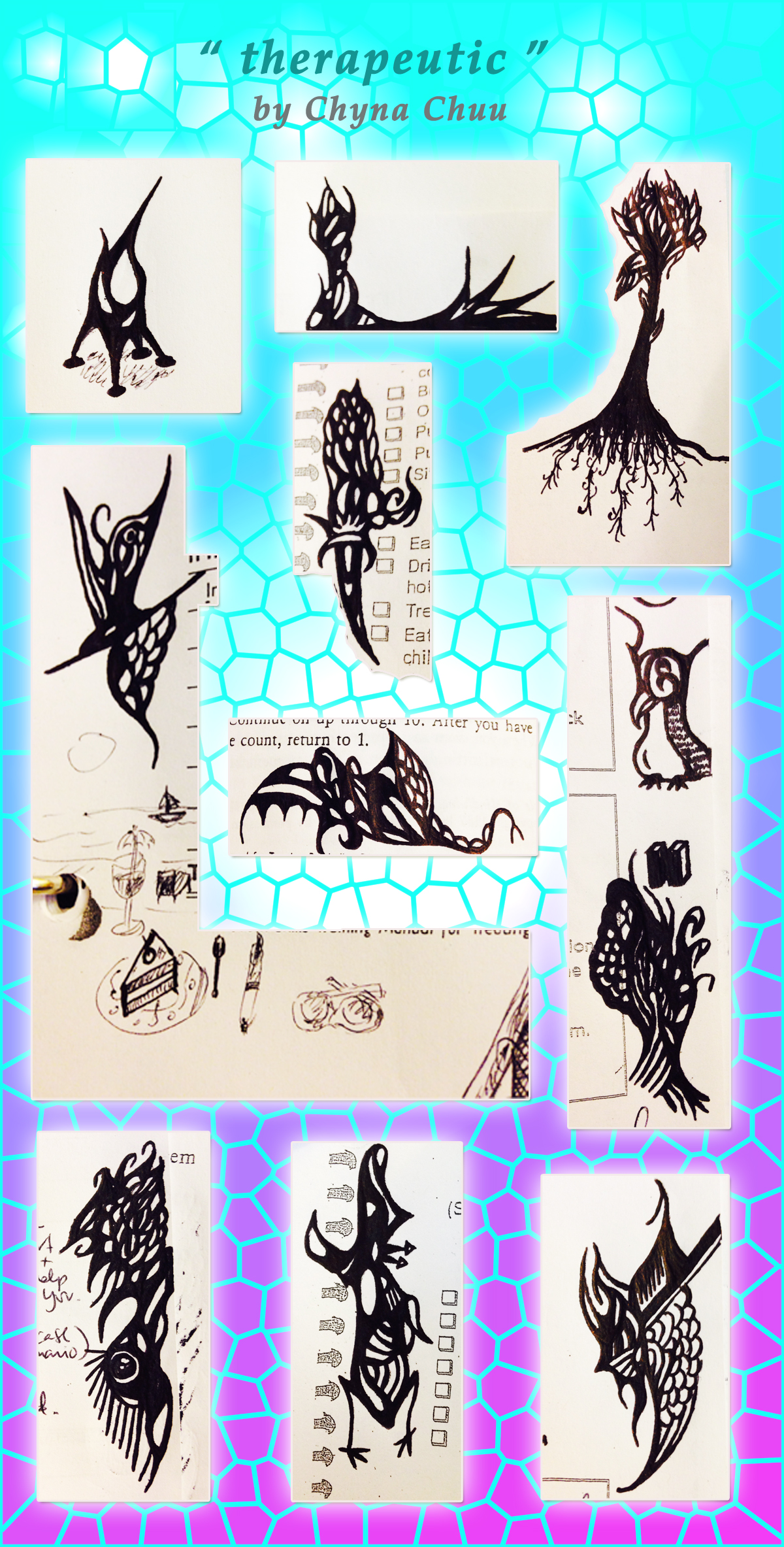 One of my methods of creative expression is sketching. I describe my style as free-flowing, in that I don't usually begin with any sort of fixed concept to draw, but mostly build on line by line. I allow my hand to be led by wherever my creativity chooses to go, without questioning it. It is at times chaotic, limitless, emotionally cathartic, and always an exhilarating and unpredictable journey. |